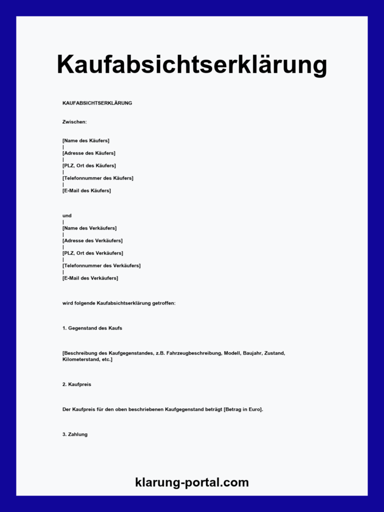 Laden Sie unsere Kaufabsichtserklärung Vorlage im PDF-Format herunter. Verpflichtet den Käufer zur Zahlung der vereinbarten Maklerprovision. Perfekt für Ihre Immobiliengeschäfte, einfach und rechtssicher.