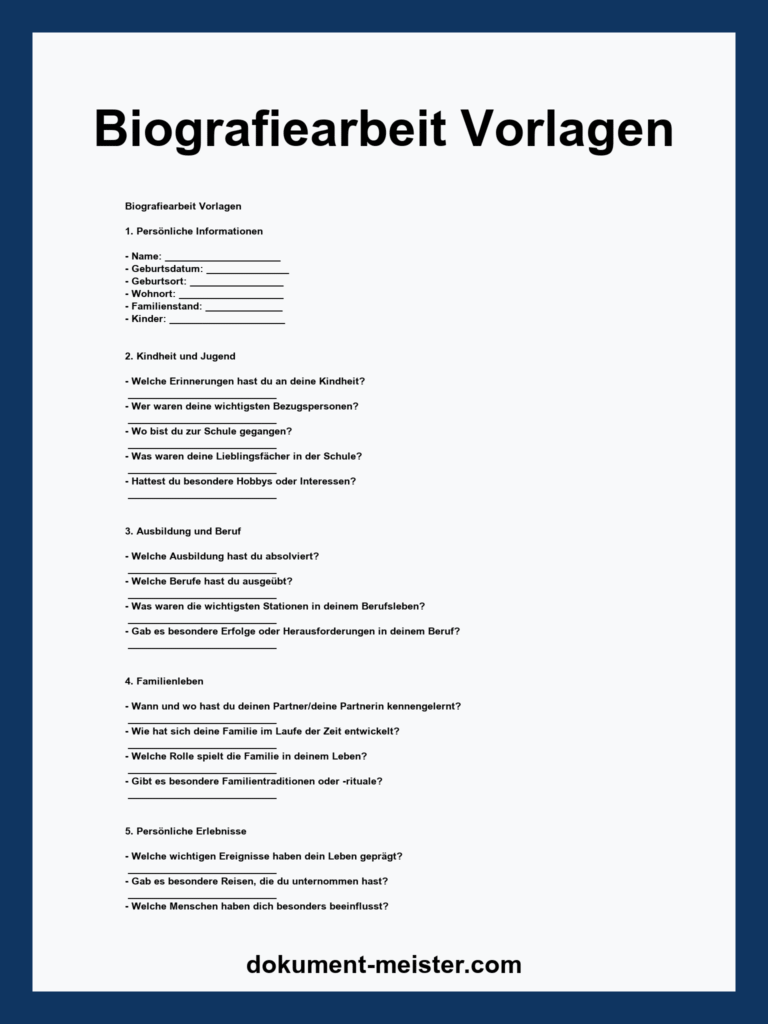 Entdecken Sie unsere Vorlage für Biografiearbeit: Dokumentieren Sie Hobbys, Interessen, Religionszugehörigkeit, Kirchenbesuche, Rauchgewohnheiten und musikalische Vorlieben. Perfekt für eine umfassende Lebensgeschichte.