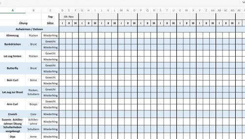 Vorlage für Trainingsplan in PDF zum Ausdrucken